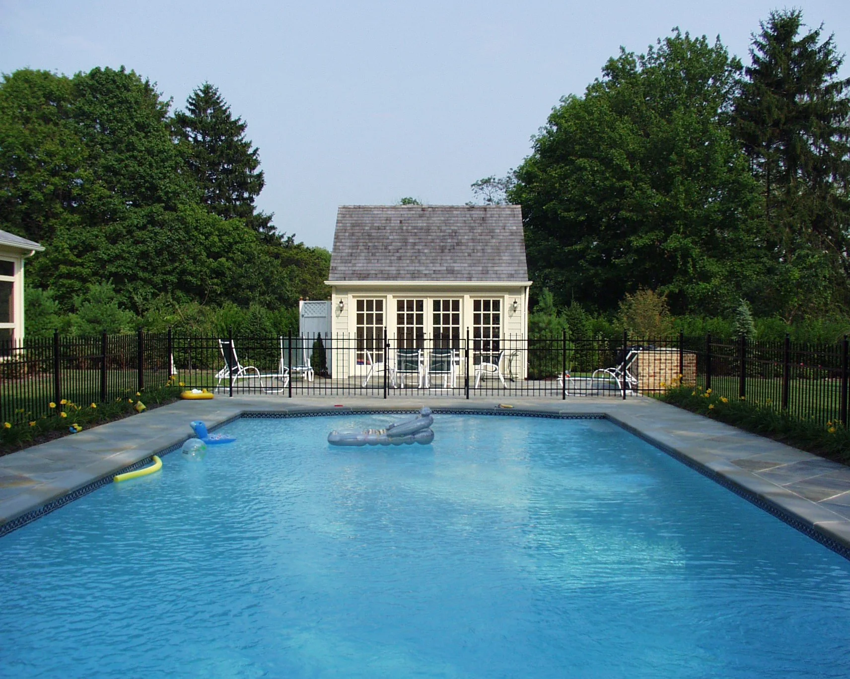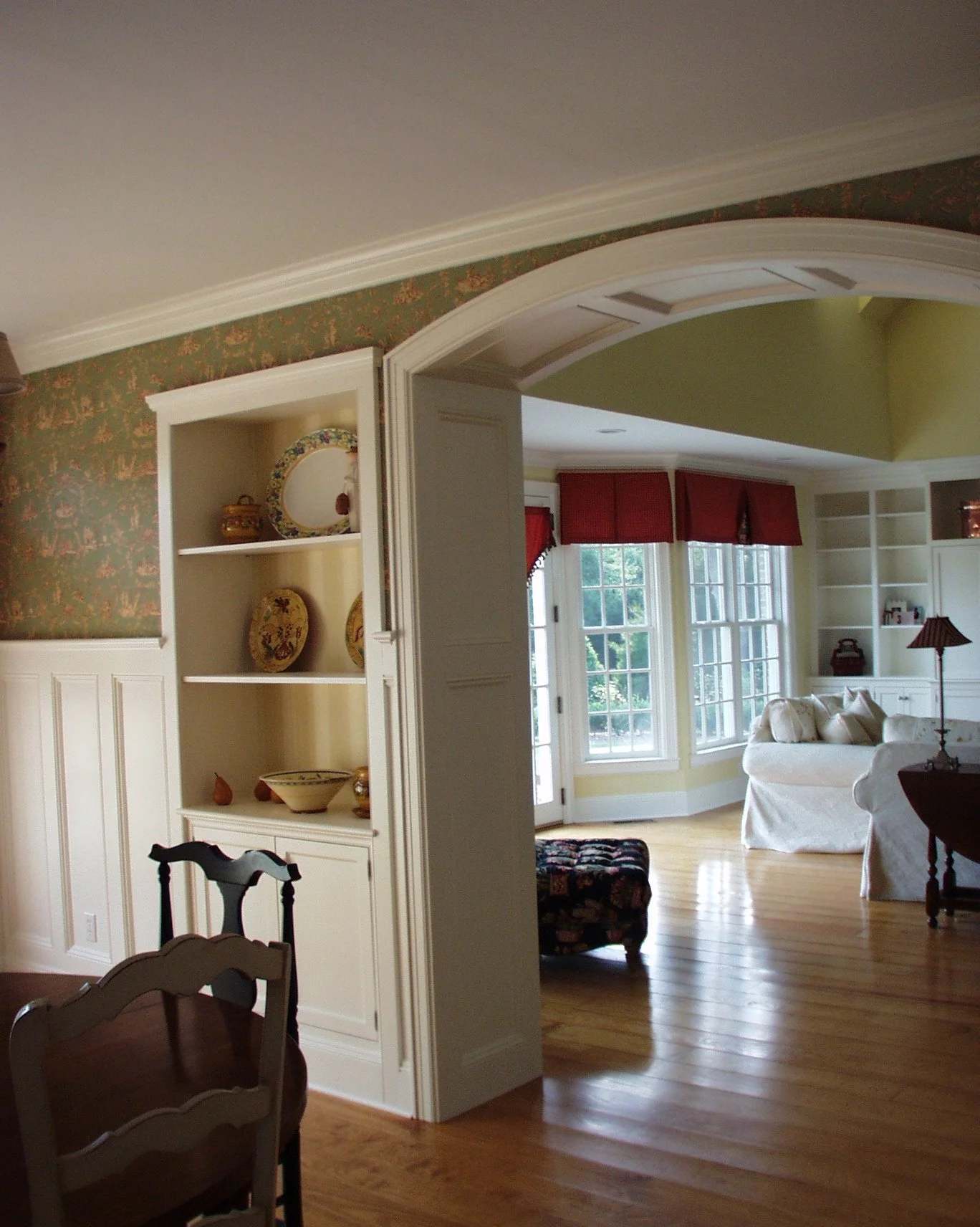 This new 5100 sq.ft., traditional residence, including six bedrooms, four full and three half-baths was designed to meet the combined dreams of a newly retired couple who also needed a home where multiple generations could gather. The project required special permitting and included an attached three-car garage, pool and pool house, and site design. Special touches to meet the couple's hobbies included a balcony overlooking the living room featuring a dedicated puzzle-making area, a flower cutting copper sink, and numerous built-ins throughout the home.